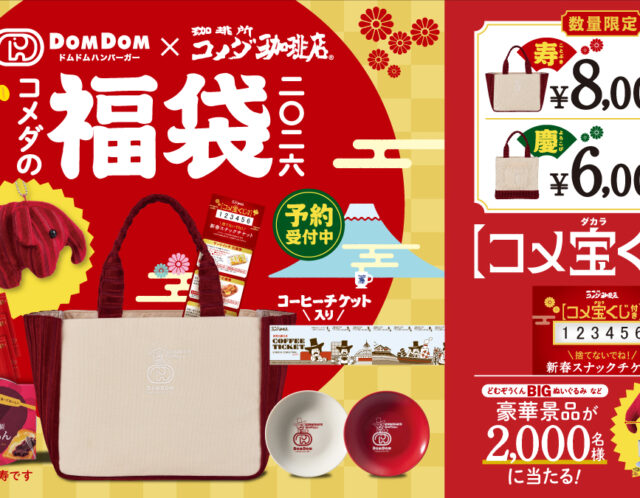 お知らせ NEWS ホーム お知らせ 2025.11.12 2026年コメダの福袋 販売のお知らせ 2025.10.16 「コメダ珈琲店」×「ブラックモンブラン」×「祇園辻利」コラボレーション商品販売のお知らせ 2025.10.16 「ドデカメンチバーガー」・「ドデカチーズメンチバーガー」販売のお知らせ 2025.10.07 「コメダのフラッペ Rummy」販売のお知らせ 2025.09.17 【数量限定販売】11枚綴りコーヒーチケットのお知らせ 2025.09.03 お月見商品販売のお知らせ 2025.08.04 Webサイトをリニューアル