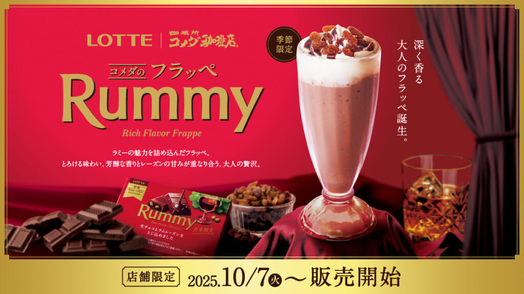 10月7日(火)より、チョコレート「ラミー」とコラボレーションした「コメダのフラッペ Rummy」を、コメダ珈琲店の一部店舗にて販売いたします。